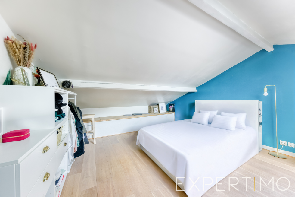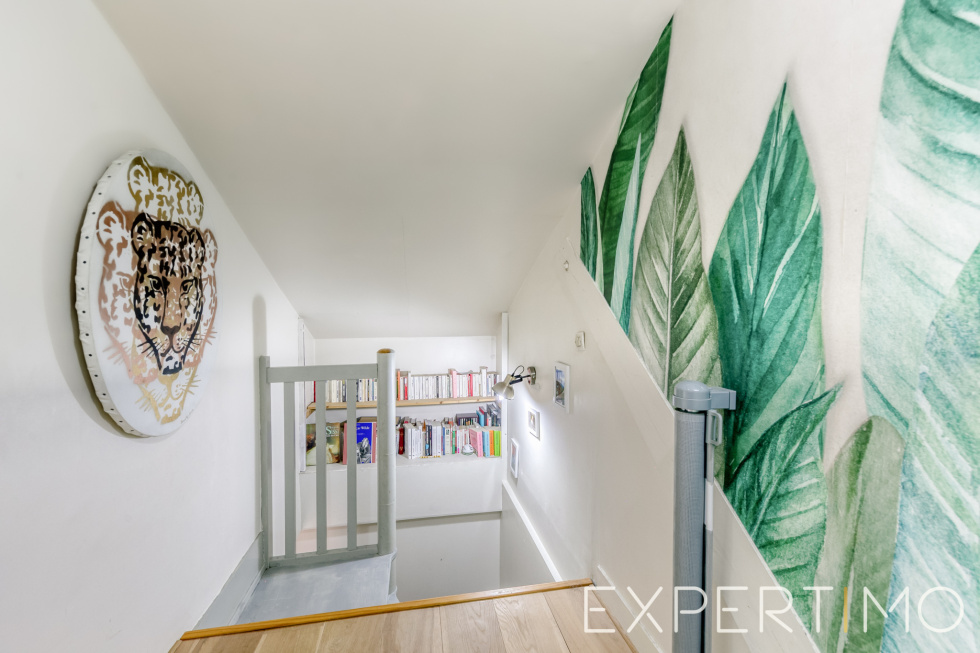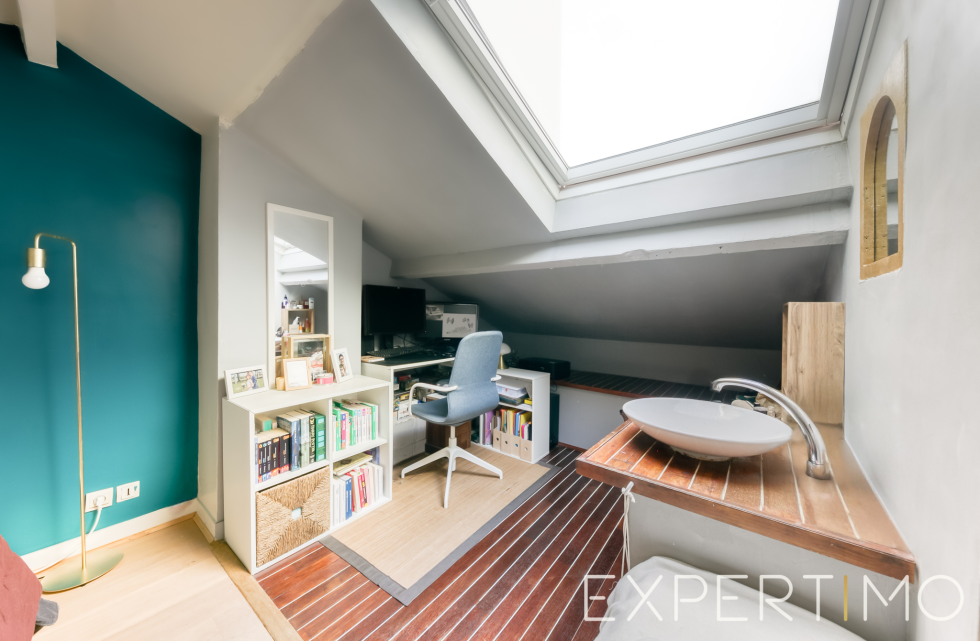 Au 2ème et dernier étage d'une petite copropriété (1930) de 6 habitations, ce trois pièces en duplex, sans aucune perte de place, se compose d'une séjour avec une très jolie cuisine ouverte aménagée et équipée, d'une chambre au calme à la vue arborée, avec un grand placard penderie, d'une grande chambre parentale de 16m2 sous les toits avec un espace lavabo, d'une salle de douche et des toilettes séparés. En très bon état, double vitrage, nombreux rangements, notamment au niveau des sous-pentes de la chambre parentale. Proche des commerces et de l'île Saint-Germain. Chauffage et eau chaude individuels électriques. Charges de copropriété : 94 euros / mois. Transport : station RER Issy et T2 Les Moulineaux. La présente annonce immobilière vise 1 lot principal situé dans une copropriété de 7 lots ne faisant l'objet d'aucune procédure en cours. Information d'affichage énergétique sur ce bien : classe ENERGIE D et classe CLIMAT D. Elle a été rédigée sous la responsabilité éditoriale de Mme Marie-Eve COULOMB, mandataire indépendante en immobilier, agent commercial immatriculé au RSAC sous le numéro 883507998.